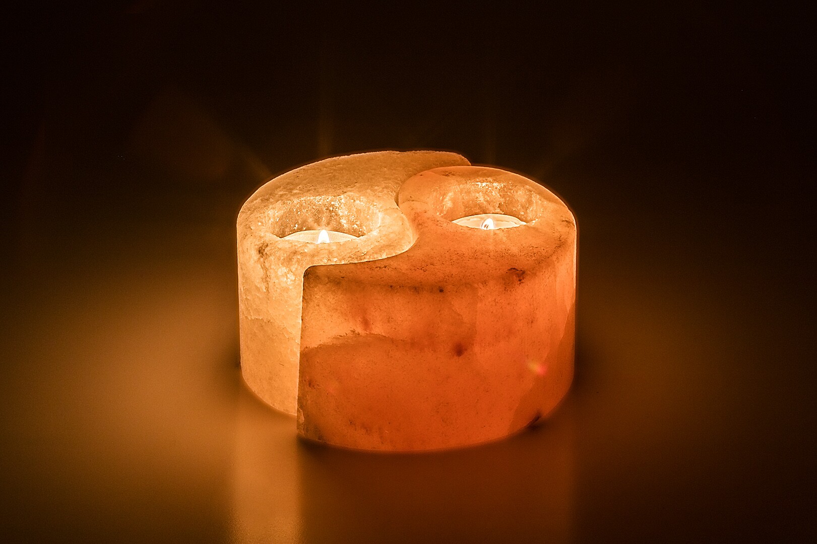 Svícen Rabalux Soluna je doporučen těm, kteří upřednostňují útulná dekorativní svítidla z přírodních materiálů. Stolní lampa je vyrobena z kamenné soli v oranžovo-bílé barevné kombinaci a má tvar symbolu jin-jang. Tento hřejivý svícen je ideální do různých místností vašeho domova – skvěle doplní osvětlení ložnice, obývacího pokoje, jídelny nebo i koupelny. Co může být příjemnější než večeře při svíčkách v klidné atmosféře domova, nebo relaxační koupel s hudbou a jemným světlem? Stolní svícen pojme dvě čajové svíčky. Objímka a žárovka nejsou součástí balení.