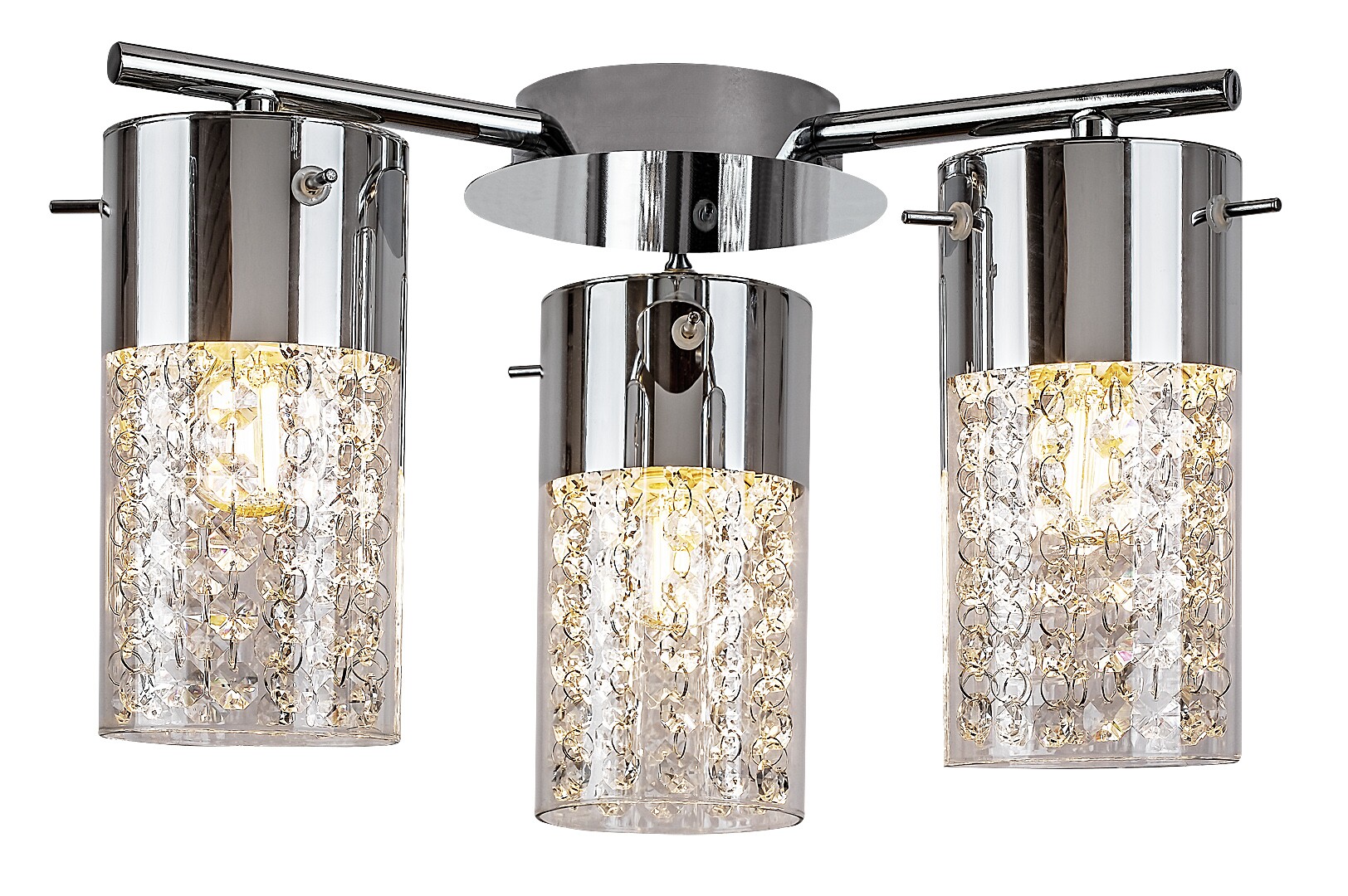 Koupelnové stropní svítidlo Niagara se 3 žárovkami, která představuje klasický styl, bude dominantním doplňkem zařízení vaší koupelny. Tento elegantní model poskytuje atmosférické osvětlení pro váš večerní rituál před spaním. Stropní svítidlo, které se skládá z kovového svítidla chromové barvy a průhledných stínidel lze použít se 3 žárovkami, každá s výkonem do 40W. Typ patice je E14. 3 hlavy svítidla visí na nosných tyčích v barvě chromu, které vyčnívají z kulaté dekorativní základny. Svítidlo Niagara je ozvláštněné dekorativními křišťálovými prvky pod skleněnými stínítky, které připomínají vodopád – jak naznačuje název svítidla. Krytí IP44 této svítilny zajišťuje jeho ochranu proti vniknutí předmětů do průměru 1 mm a proti stříkající vodě z jakéhokoli směru. Rozměry tohoto koupelnového stropního svítidla jsou následující: šířka 335 mm, vzdálenost od stropu 215 mm, instalační průměr 100 mm. Tento model se dodává bez světelných zdrojů.