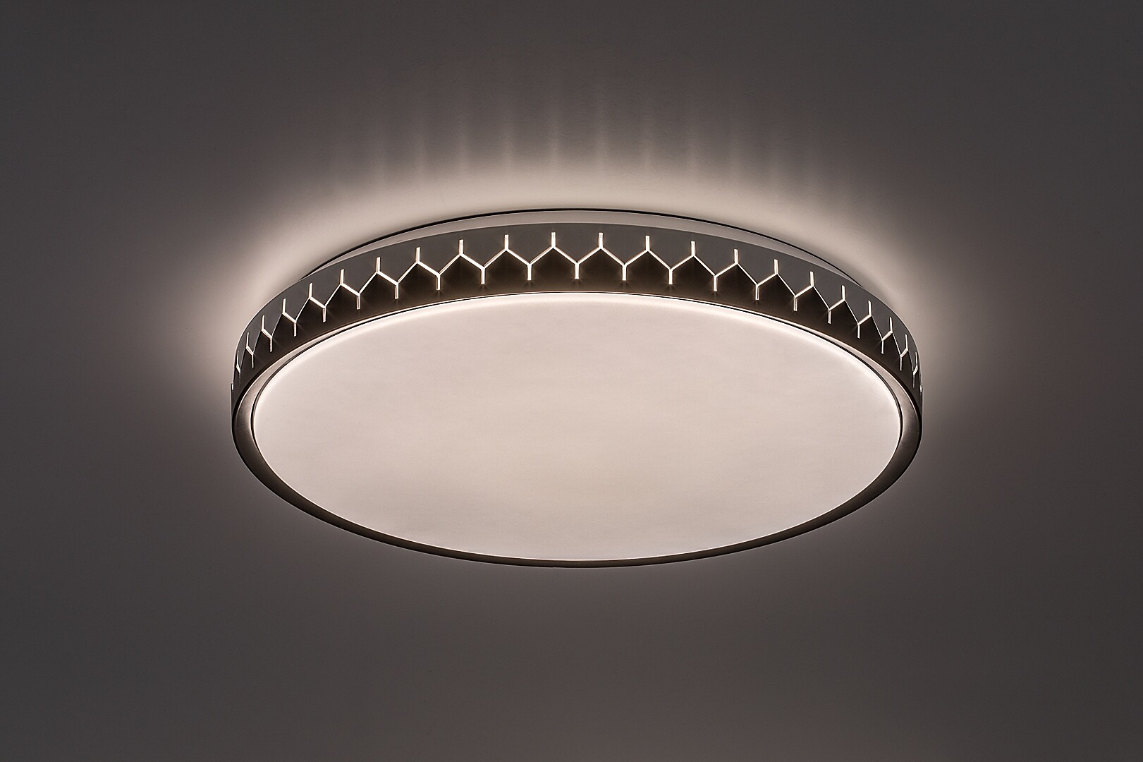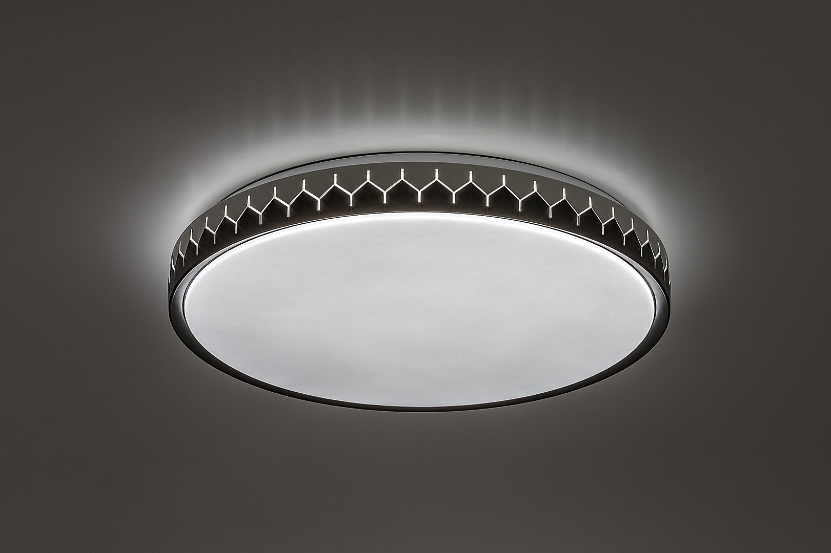 Rabalux Malin stropní světlo je doporučeno pro ty, kteří hledají lampu s vysokou světelnou intenzitou, která zároveň nabízí chytré funkce. Tento moderní model s umírněným vzhledem má vestavěný LED světelný zdroj, který zajišťuje energeticky efektivní provoz a dlouhou životnost. Jak barevná teplota, tak jas lampy mohou být upraveny, a navíc lze využít funkce paměti, časovače a nočního světla. Všechny chytré funkce lze ovládat pomocí dálkového ovladače. Stropní lampa je vyrobena z kovu v kulatém tvaru v kombinaci černé a šedé barvy, doplněná bílým plastovým stínidlem. Po stranách lampy běží výrazný vzor vyřezaný, skrze který světlo lampy také prosvítá. Tento chytrý model je ideální volbou pro prostorné obývací pokoje, ložnice nebo pracovny.