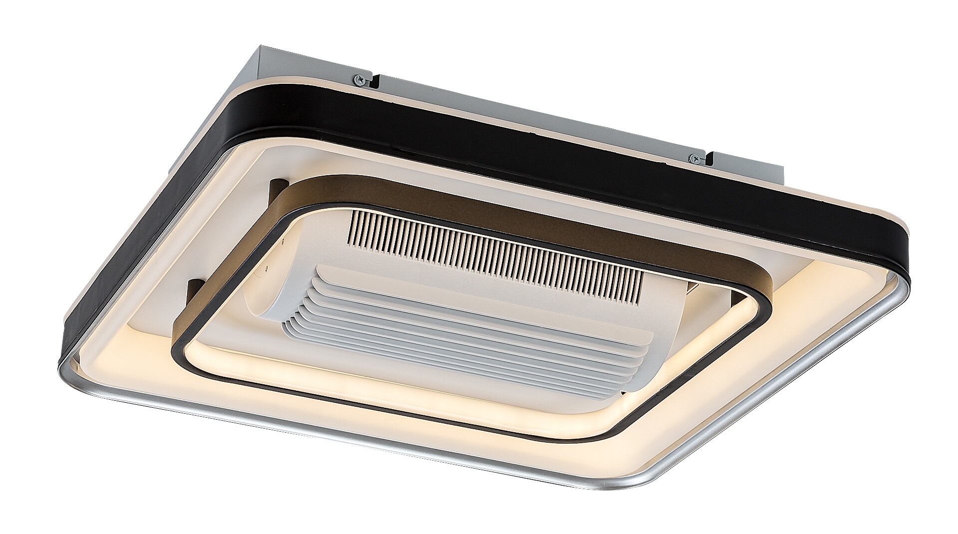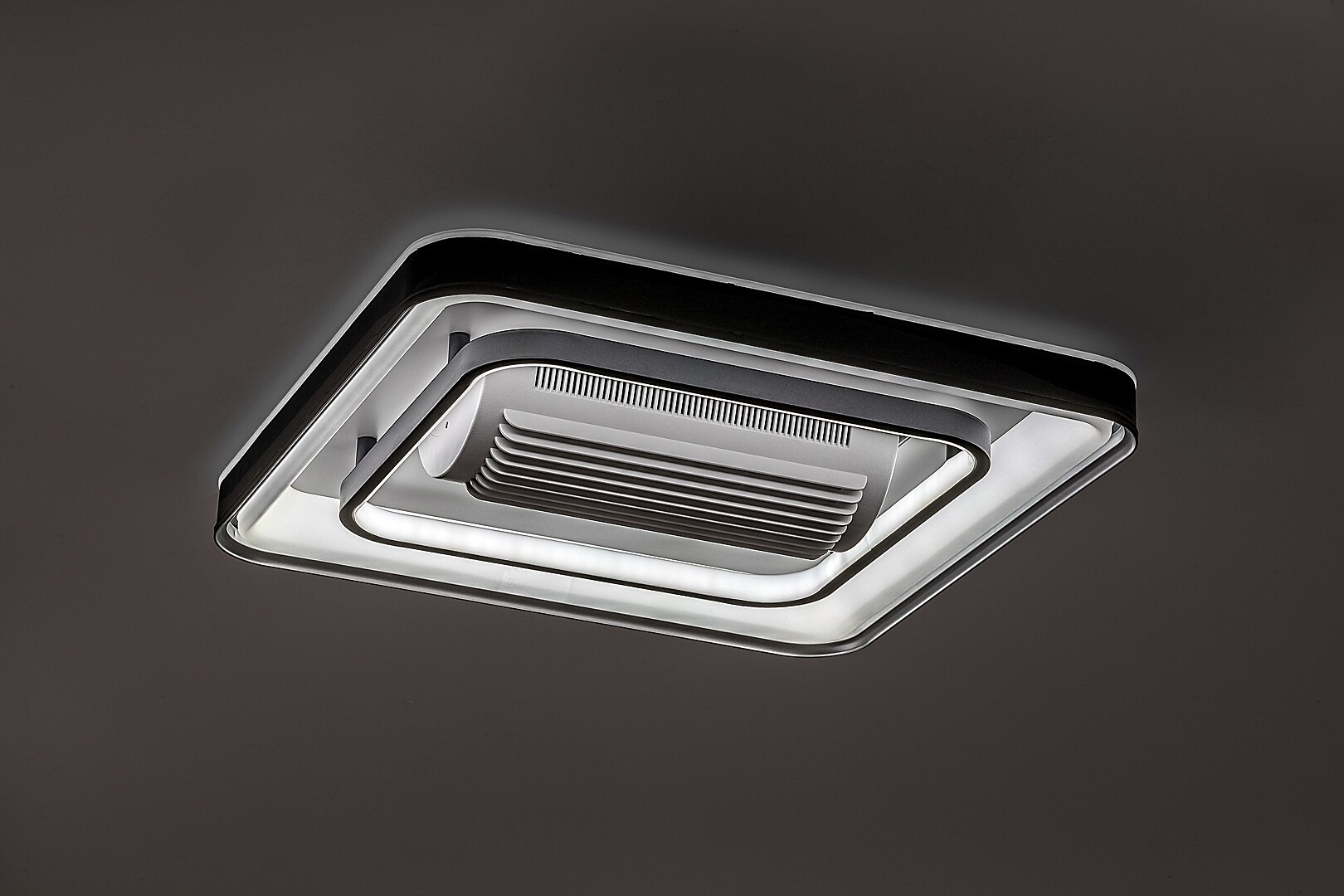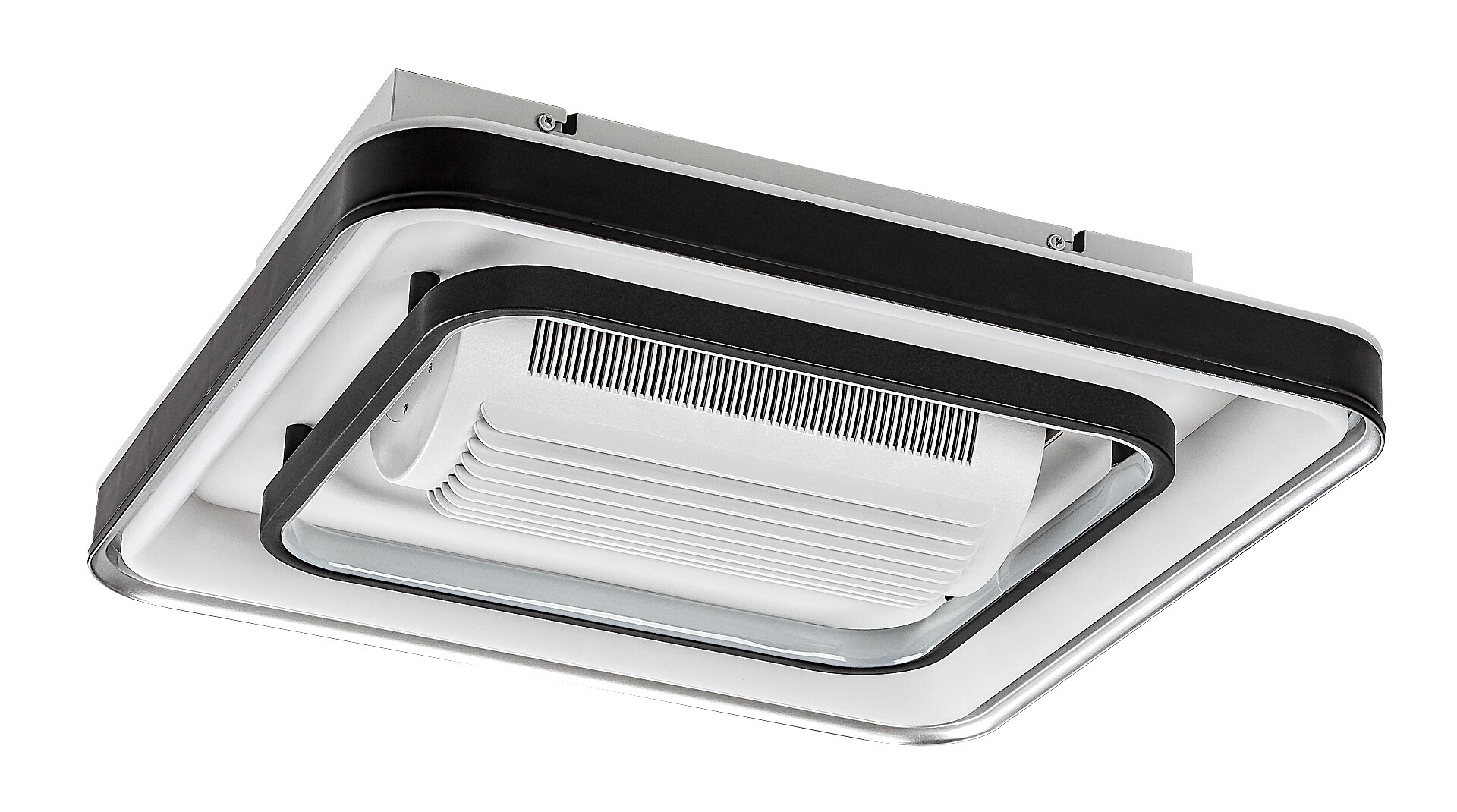 Rabalux Aireon stropní světlo s ventilátorem je doporučeno pro ty, kteří při výběru lampy dávají přednost široké funkčnosti. Tento model má vestavěný LED světelný zdroj, který zajišťuje energeticky efektivní provoz a dlouhou životnost. Mezi mnoha chytrými funkcemi je nastavení barevné teploty pomocí dálkového ovladače nebo nástěnného přepínače, stmívání, funkce paměti a časovače pomocí dálkového ovladače a funkce nočního světla. Chytré funkce lze také ovládat přes Wi-Fi. Stropní lampa je vyrobena z kovu, má čtvercový tvar s zaoblenými rohy, černý držák a bílé akrylové stínidlo. Rychlost ventilátoru je nastavitelná a výkon je dostatečný pro místnosti o velikosti 12 m². Tento model je ideální volbou pro obývací pokoj, ložnici nebo pracovnu.