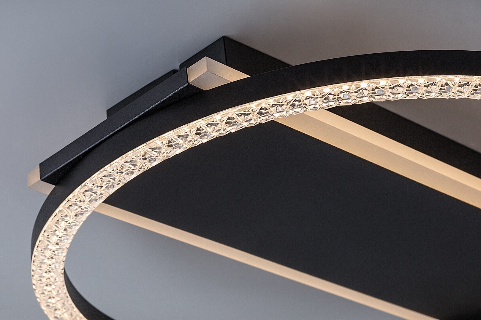 Rabalux Kerstin stropní lampa je doporučena pro ty, kteří považují energetickou účinnost za důležitý aspekt spolu s moderním a čistým vzhledem. Tato LED lampa je vyrobena z kovu v elegantní kombinaci černé a bílé barvy. Držák je černý, zatímco stínidlo z akrylu je bílé. Lampa se skládá z kulatého a čtvercového prvku. Stínidlo kruhového prvku je speciální díky povrchu připomínajícímu krystal. Druhý prvek, který prochází kruhem, je obdélníkový a těsně propojený s dekorativní základnou. Lampa má vestavěný LED světelný zdroj, který vyzařuje teplé bílé světlo, které podporuje útulnou, intimní atmosféru. Je ideální pro obývací pokoj, jídelnu nebo ložnici. Díky integrované LED technologii je tento model charakterizován energeticky efektivním provozem a dlouhou životností.