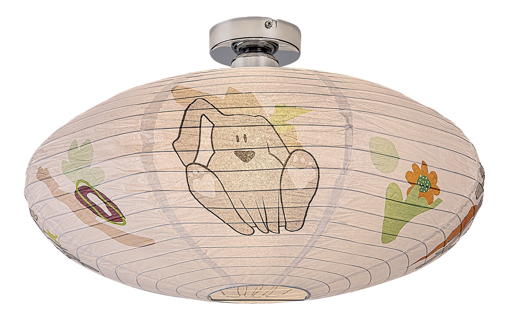 Dětské stropní svítidlo Rabalux Hopply z papíru je vlastním designovým modelem značky Rabalux. Doporučujeme jej těm, kteří chtějí dětský pokoj zpříjemnit roztomilými a veselými motivy. Svítidlo má zploštělý, zaoblený tvar, je vyrobeno z papíru a zdobeno krásným vzorem s králíčkem a balónky, který si jistě získá srdce malého obyvatele pokoje. Převládající barvy motivů jsou oranžová, hnědá a šedavé odstíny, které jsou příjemné a uklidňující pro oči a vyzařují teplo. Dětské svítidlo lze použít s jednou žárovkou o výkonu až 40 W. Pokud chcete zvýšit útulnou a intimní atmosféru, zvolte žárovku s teplým bílým světlem. Svítidlo je dodáváno bez objímky a světelného zdroje.