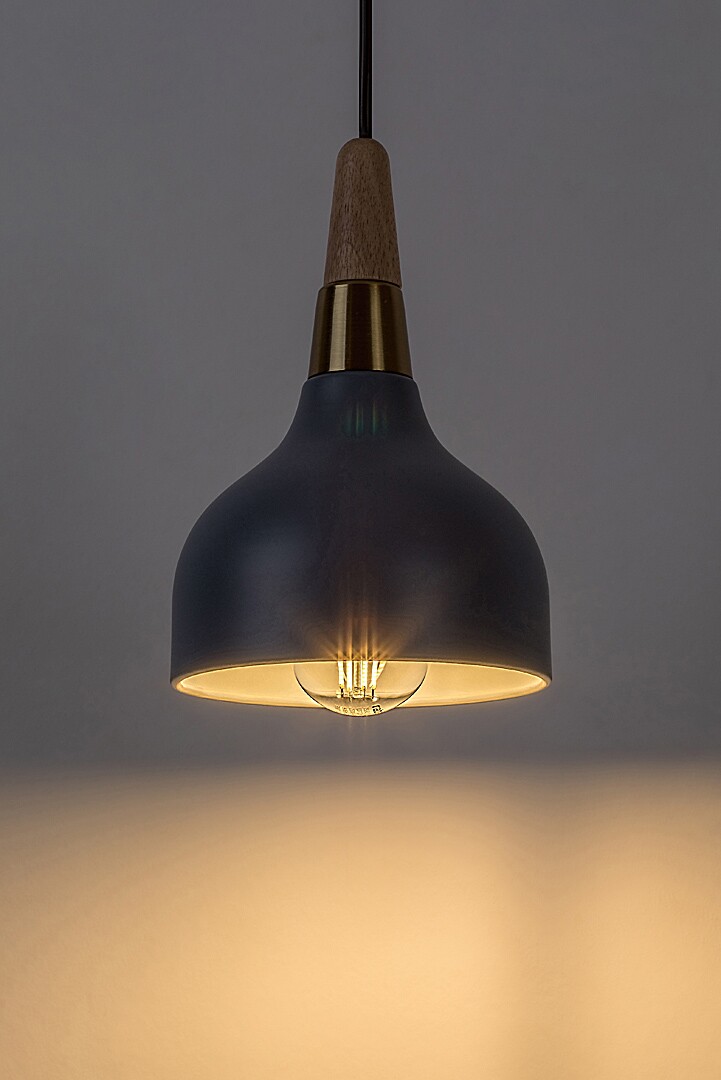 Závěsné svítidlo Rabalux Drusilla je ideální volbou pro ty, kteří si rádi vybírají severský styl zařízení pro svůj domov. Toto atraktivně navržené závěsné svítidlo je vyrobeno z kovu s dřevěným zakončením v kombinaci černé, zlaté a šedé barvy. Lze jej připevnit ke stropu pomocí malé kulaté černé dekorativní základny. Směrem dolů se rozšiřující stínidlo zakrývá žárovku po celém obvodu, takže světlo uniká pouze směrem dolů a vytváří útulné osvětlení. Použití závěsného svítidla se žárovkou vyzařující teplé bílé světlo ještě více podtrhne útulnou a intimní atmosféru. Tento model je doporučen do obývacího pokoje, kuchyně, jídelny a ložnice. Lze jej použít s jednou žárovkou o výkonu až 40 W. Typ objímky je E27. Závěsné svítidlo se dodává bez světelného zdroje.