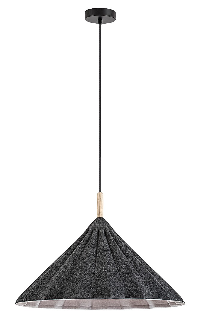 Závěsné svítidlo Rabalux Linavo je doporučeno těm, kteří preferují ekologická řešení. Tento model je vyroben v černé barvě s kovovou konstrukcí a šedým plstěným stínidlem. Použitý plstěný materiál je ekologicky šetrný a vyrobený z recyklovaných materiálů. Stínidlo má trojúhelníkový tvar a vlnitý povrch. Díky svému velkému průměru a otevřenému spodnímu designu vyzařuje žárovka světlo v širokém úhlu. Závěsné svítidlo lze připevnit ke stropu pomocí malé kulaté dekorativní základny a lze jej použít s jedním světelným zdrojem o výkonu až 40 W. Typ objímky je E27. Podle svého vkusu si můžete zvolit světelný zdroj vyzařující teplé nebo přirozené bílé světlo. Svítidlo je ideální volbou do obývacího pokoje, ložnice nebo pracovny. Dodává se bez světelného zdroje.