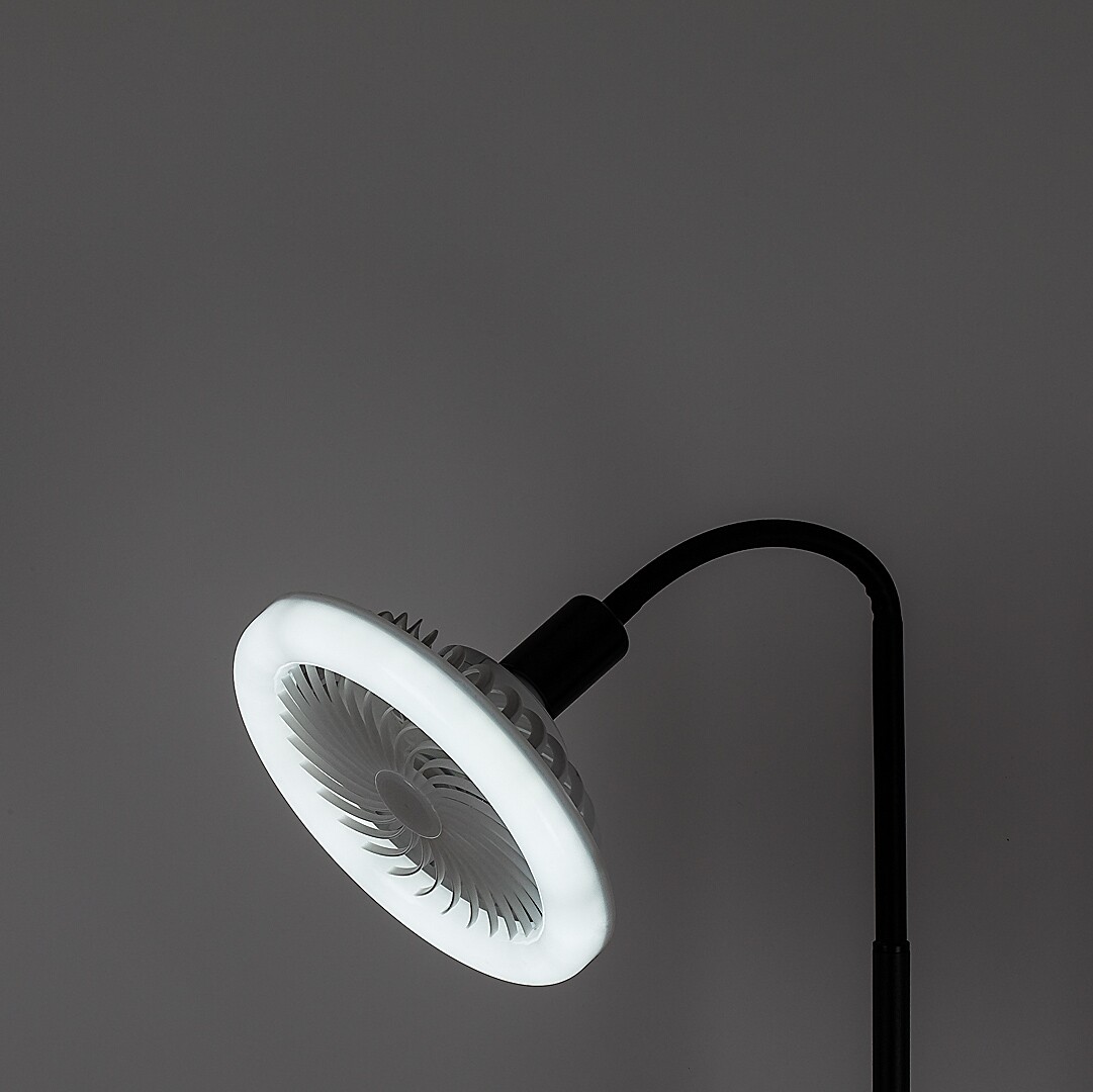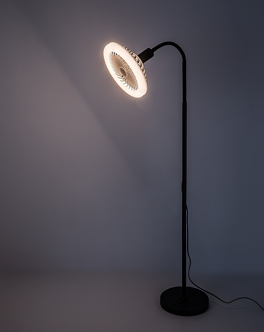 Stojací lampa s ventilátorem Rábalux Venturo v moderním, čistém designu přináší příjemné osvětlení i osvěžující proudění vzduchu do vašeho obývacího pokoje, ložnice nebo pracovny. Štíhlý černý kovový stojan a bílý plastový prstencový difuzor ladí s moderními interiéry, přičemž naklápěcí hlava umožňuje cílené nasvícení například čtecího koutku. Jas světla lze pohodlně regulovat dálkovým ovladačem, barevnou teplotu pak nastavíte od teplé po studenou, takže si snadno vytvoříte požadovanou atmosféru. Tichý ventilátor jemně cirkuluje vzduch a přispívá tak k vyššímu pohodlí v místnosti. Lampa je vybavena objímkou E27, součástí balení je LED světelný zdroj. Ovládání je jednoduché díky kabelovému vypínači – praktická a moderní stojací lampa pro každodenní použití.