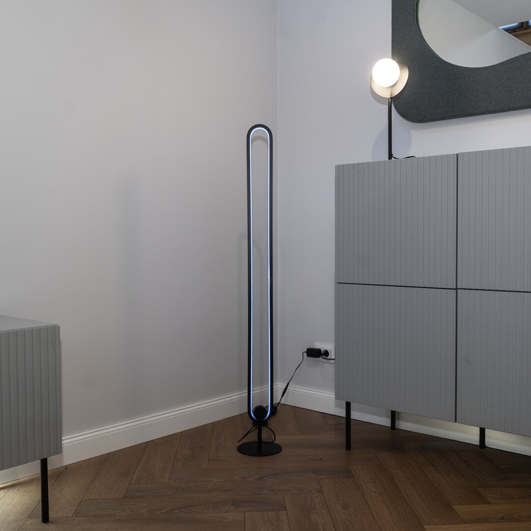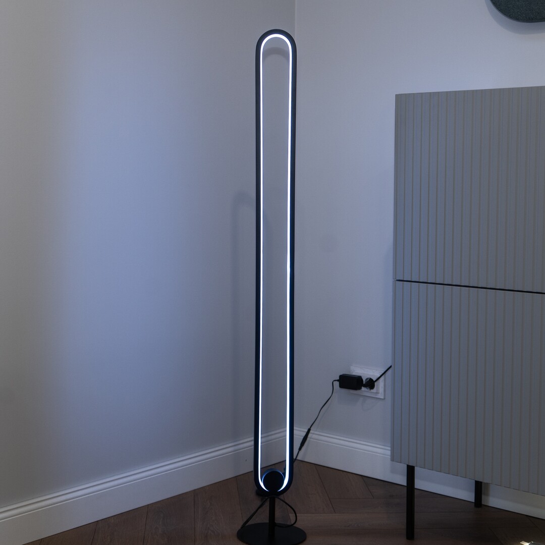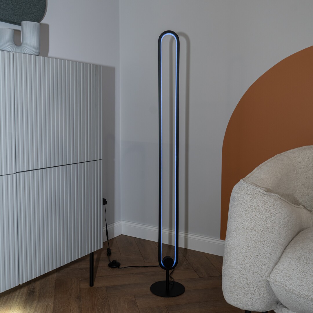 Stojící lampa Barto může být zajímavým doplňkem vašeho moderního obývacího pokoje. Díky jednoduchému a čistému designu ji lze snadno zakomponovat do místnosti v minimalistickém stylu. Kovovou lampu Barto v matné černé barvě doplňuje bílé plastové stínítko a kulatý plochý černý dekorativní podstavec. Vestavěný LED světelný zdroj má výkon 19 W a životnost 25 000 hodin. Tento model, který je schopen osvětlení RGB, díky proměnlivým barvám představuje účinný způsob, jak večer vytvořit příjemnou atmosféru pro relaxaci a odpočinek. Díky malým rozměrům jej lze snadno umístit vedle pohovky, do rohu nebo kdekoli v obývacím pokoji. Barto má paměťovou funkci, kterou lze nastavit pomocí dálkového ovládání nebo přepínače. Stojací lampa má šířku 100 mm, výšku 1250 mm a délku kabelu 2100 mm.