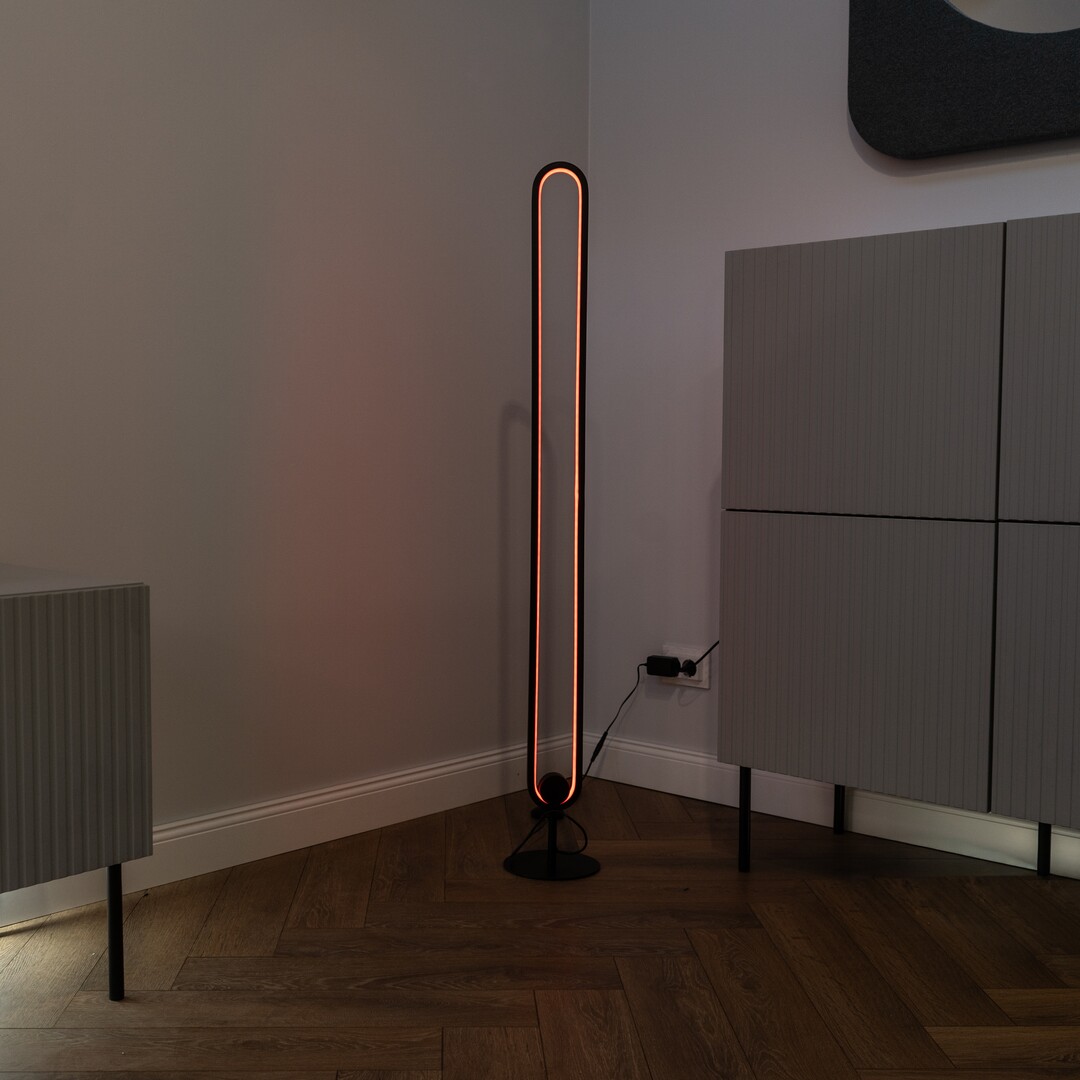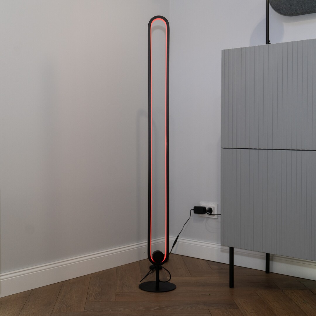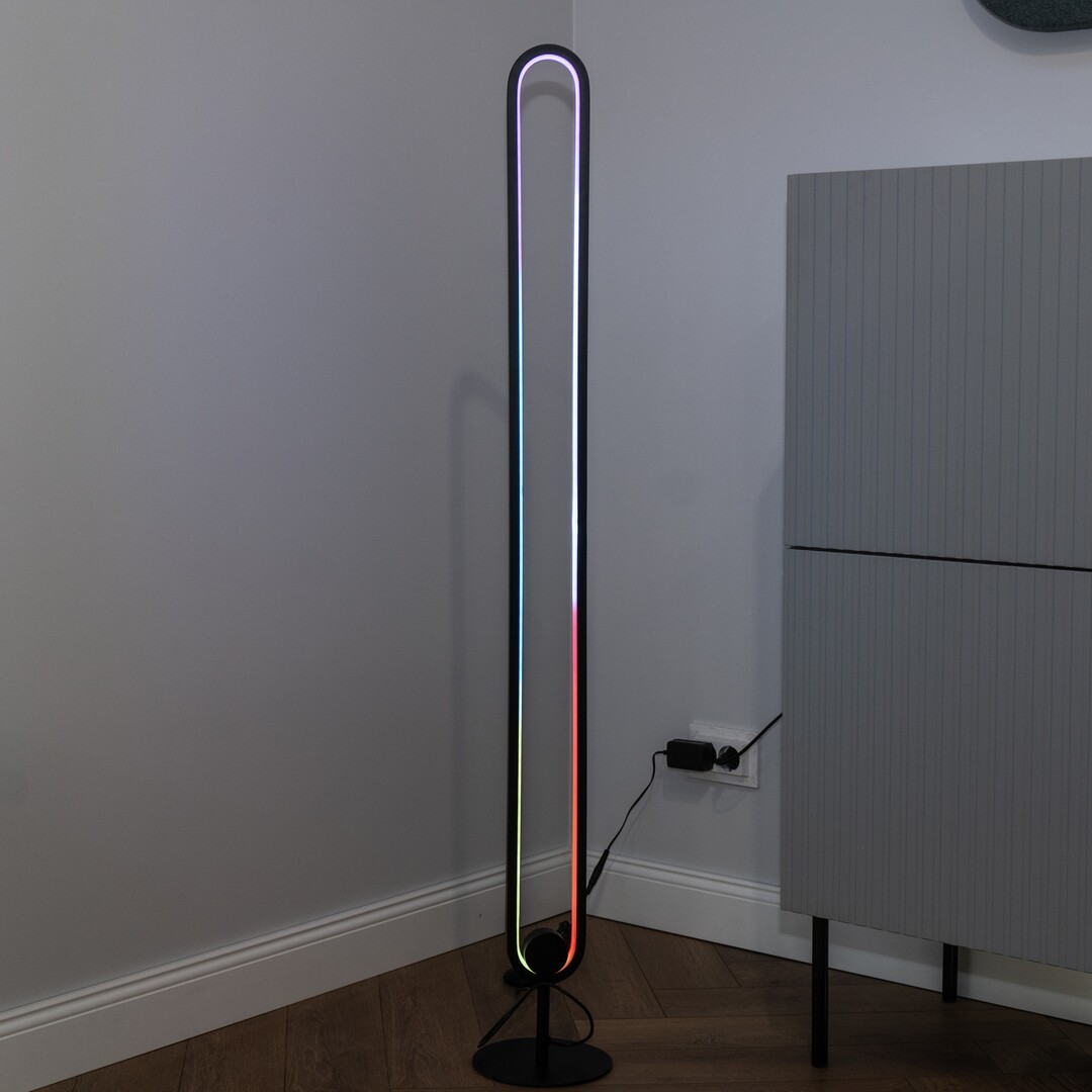Stojící lampa Barto může být zajímavým doplňkem vašeho moderního obývacího pokoje. Díky jednoduchému a čistému designu ji lze snadno zakomponovat do místnosti v minimalistickém stylu. Kovovou lampu Barto v matné černé barvě doplňuje bílé plastové stínítko a kulatý plochý černý dekorativní podstavec. Vestavěný LED světelný zdroj má výkon 19 W a životnost 25 000 hodin. Tento model, který je schopen osvětlení RGB, díky proměnlivým barvám představuje účinný způsob, jak večer vytvořit příjemnou atmosféru pro relaxaci a odpočinek. Díky malým rozměrům jej lze snadno umístit vedle pohovky, do rohu nebo kdekoli v obývacím pokoji. Barto má paměťovou funkci, kterou lze nastavit pomocí dálkového ovládání nebo přepínače. Stojací lampa má šířku 100 mm, výšku 1250 mm a délku kabelu 2100 mm.