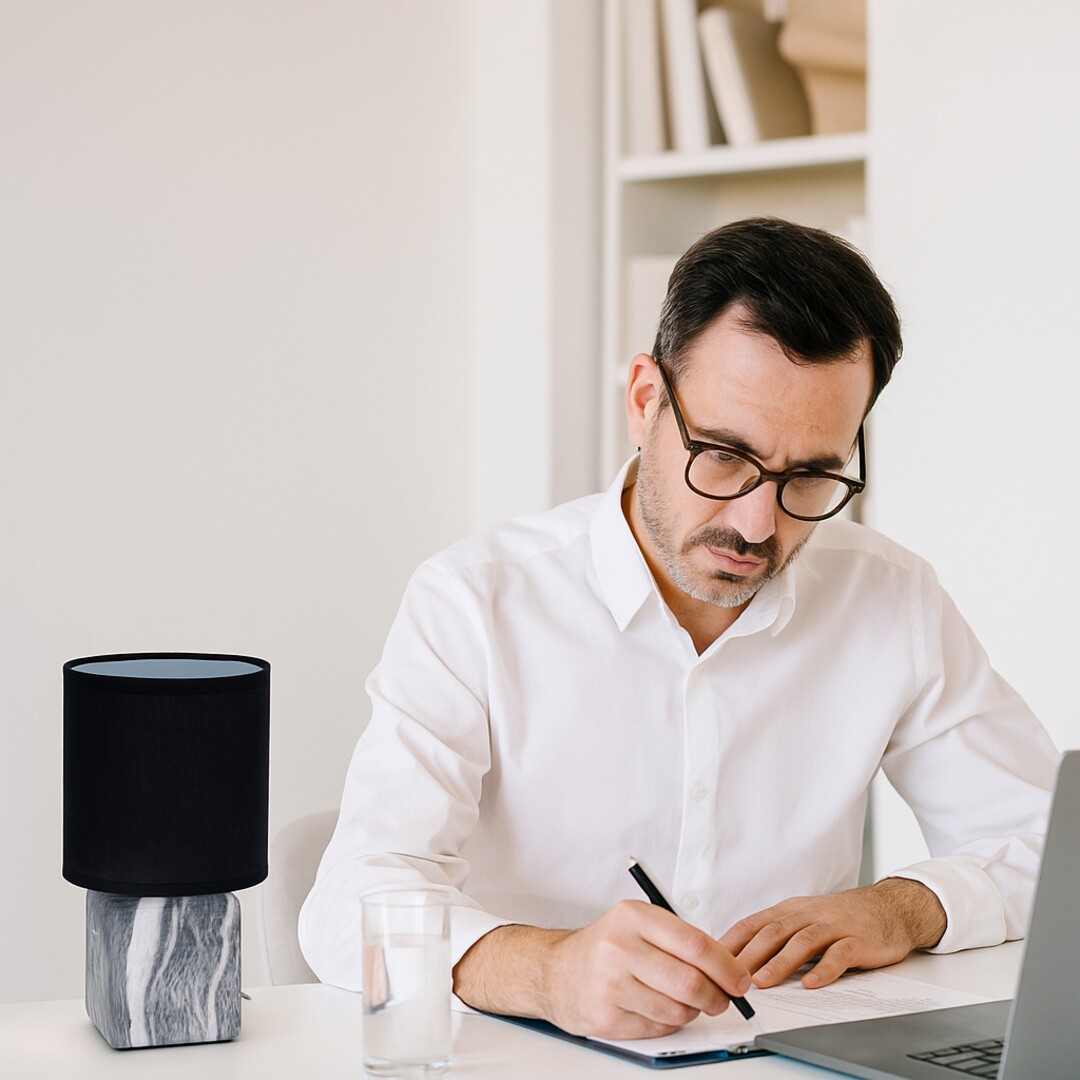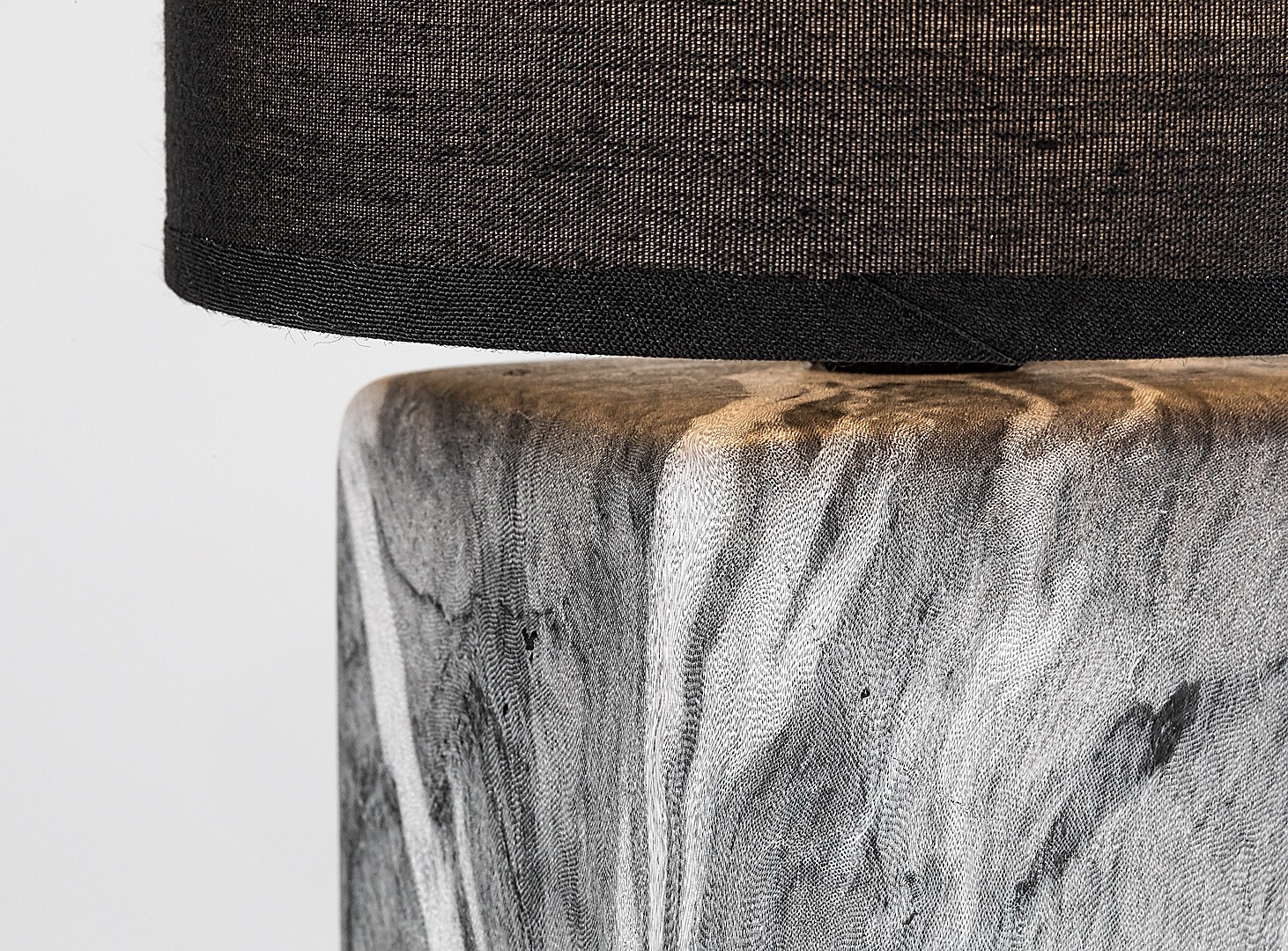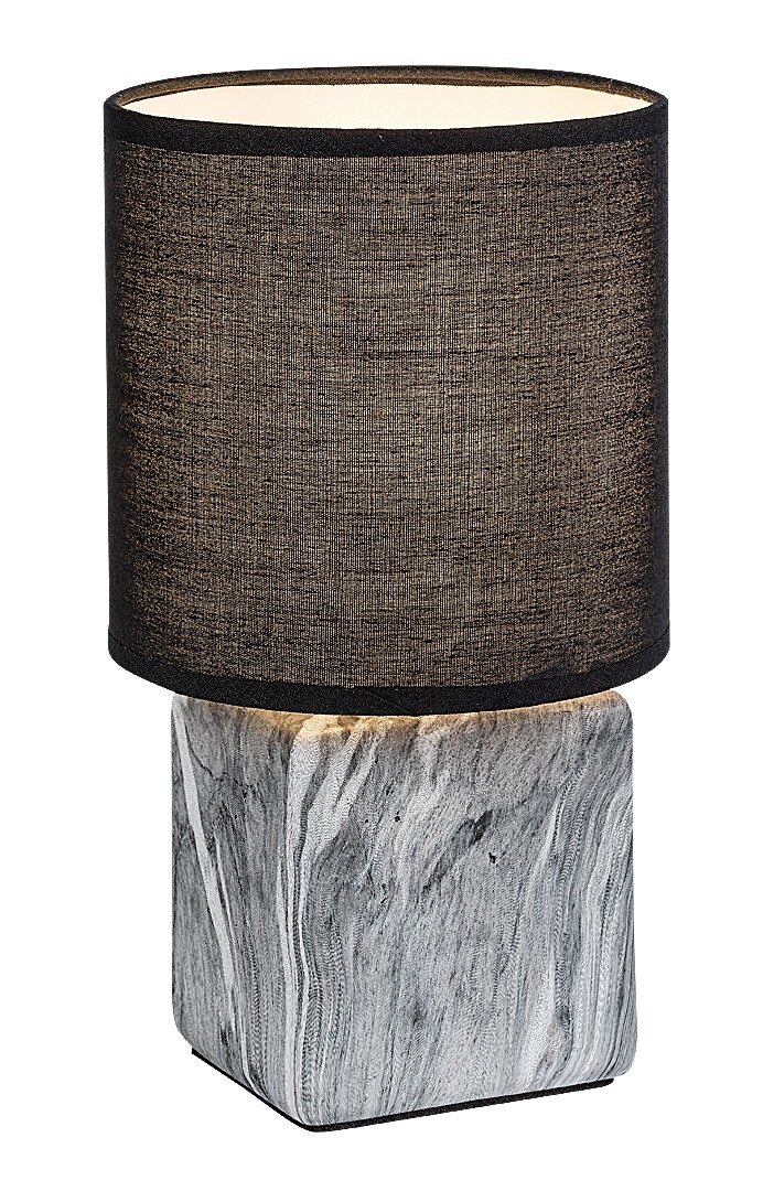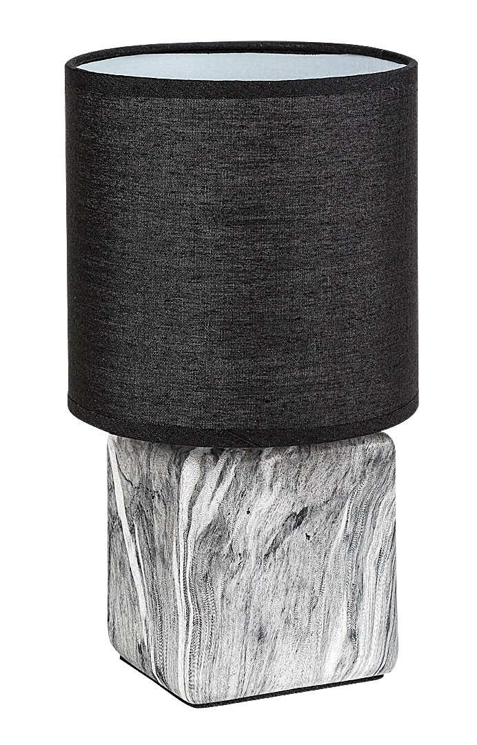 Stolní lampa Rabalux Nalisa je doporučena těm, kteří hledají moderní, kompaktní doplňkové svítidlo. Tento model kombinuje oblý a hranatý tvar s materiály s přírodním vzhledem: je vyroben z keramického bloku s šedobílým mramorovým efektem a doplněn černým textilním válcovým stínidlem, které je otevřené shora i zdola. Je ideální do ložnice nebo obývacího pokoje, umístěná na nočním stolku nebo stole. Tmavé stínidlo poskytuje diskrétní osvětlení, takže je tato stolní lampa skvělou volbou, pokud si potřebujete v noci rozsvítit, aniž byste rušili svého partnera. Lampa funguje s jednou žárovkou s maximálním příkonem 40 W. Typ objímky je E14. Keramická noční lampa je vybavena černým kabelem a spínačem na kabelu. Dodává se bez světelného zdroje.