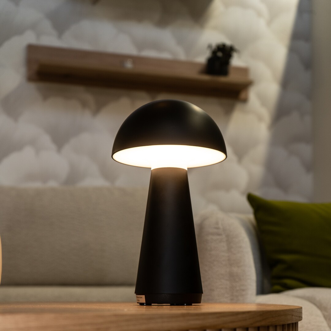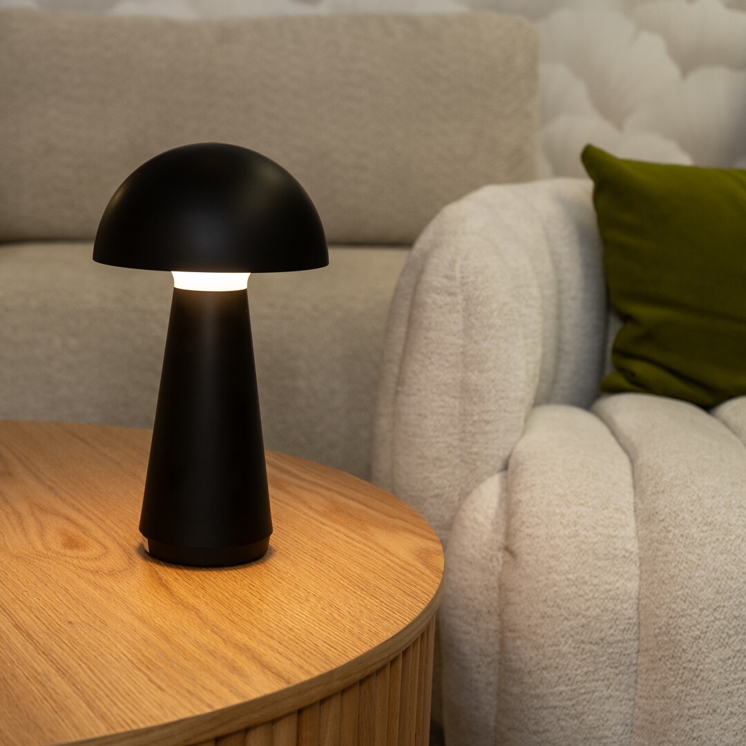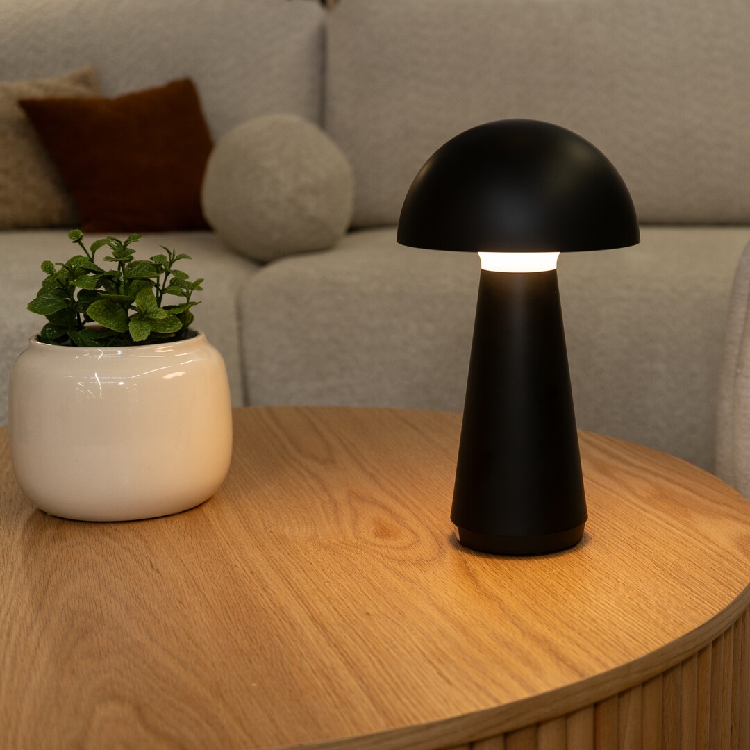Moderní stolní lampa Ishtar zaujme svým originálním tvarem připomínajícím houbu a stane se výrazným prvkem obývacího pokoje nebo ložnice. Matně černé provedení z plastu je vybaveno integrovaným LED světelným zdrojem, který vyzařuje teplé a příjemné světlo. Dotykové ovládání s možností regulace jasu činí lampu ideální pro náladové osvětlení. Díky akumulátorovému napájení a nabíjení přes USB lze lampu umístit flexibilně, zatímco krytí IP44 zajišťuje bezpečné každodenní používání. Podívejte se na produkt v reálném prostředí na YouTube!